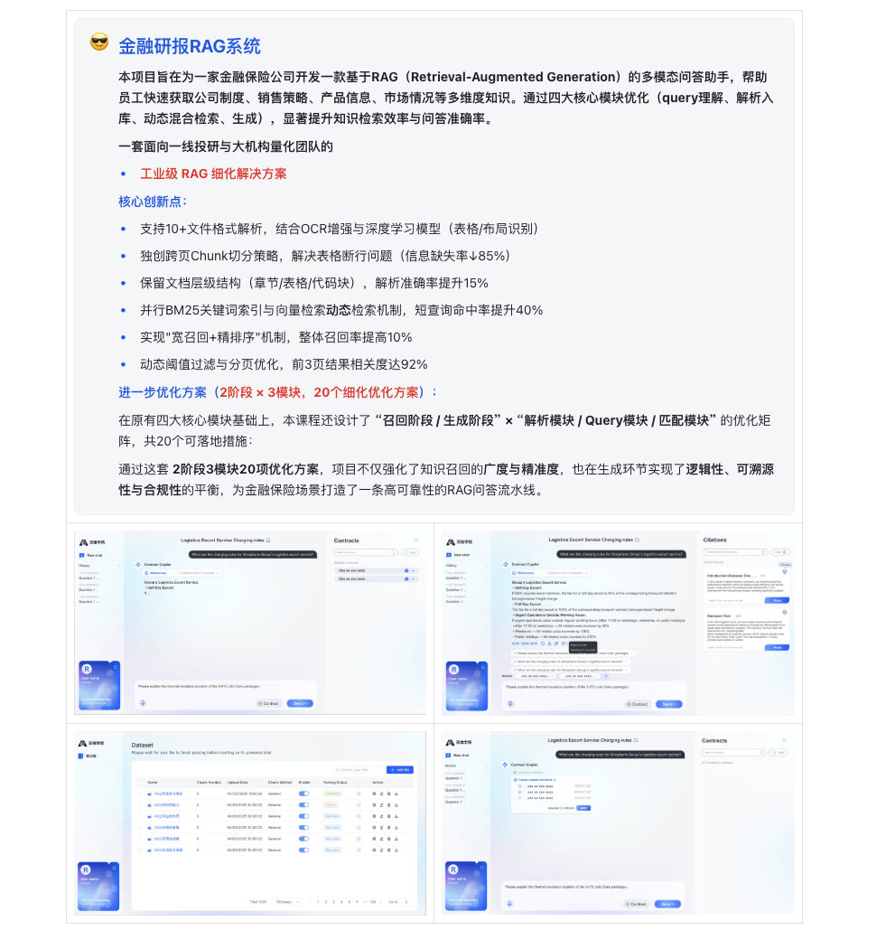 这些项目写进简历,比普通实习更有说服力——因为你能讲清楚每一个技术细节和优化方案,并且我们会教你如何合理地迁入自己的场景之中。