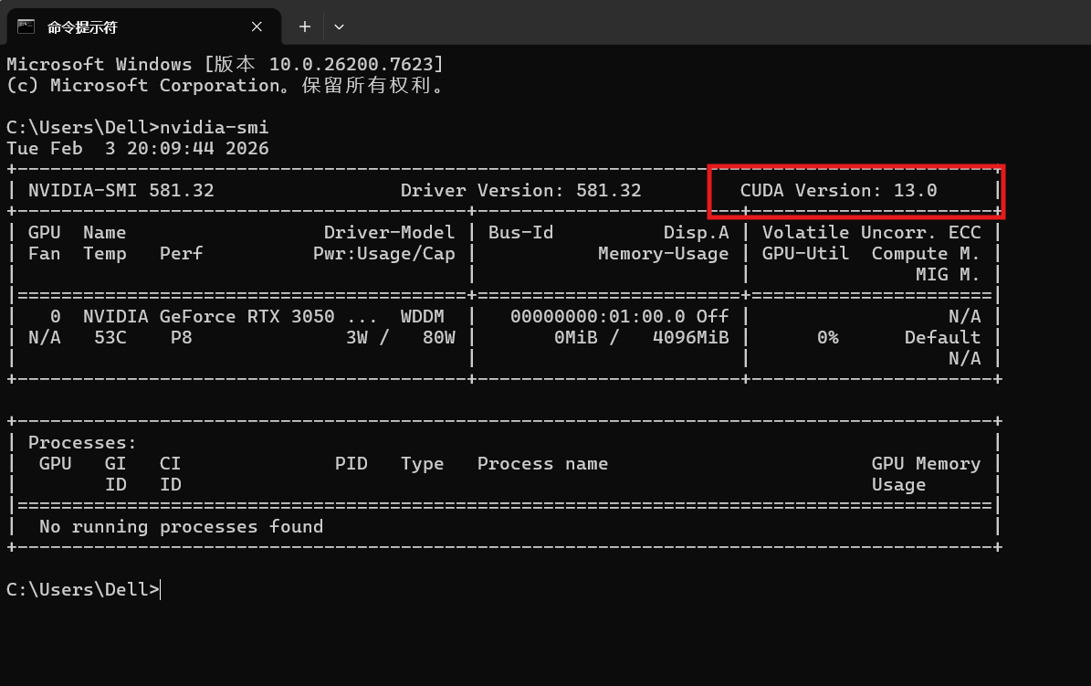 win+R输入cmd,打开命令提示符,输入命令nvidia-smi,即可看到电脑支持最高版本的版本号。如下图所示: