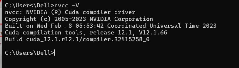 在命令提示符内输入命令nvcc –version 或者nvcc -V,查看是否有cuda,如果有则安装成功,如果没有则可能版本不兼容