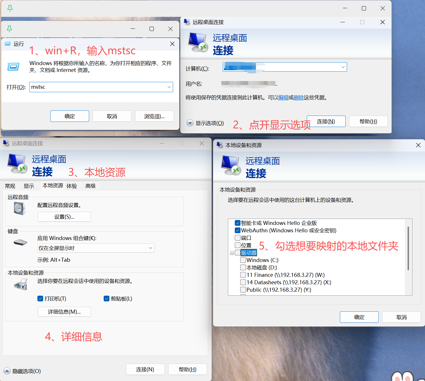 解决方法:Windows 远程桌面(RDP)中的驱动器重定向(本地资源映射)功能。