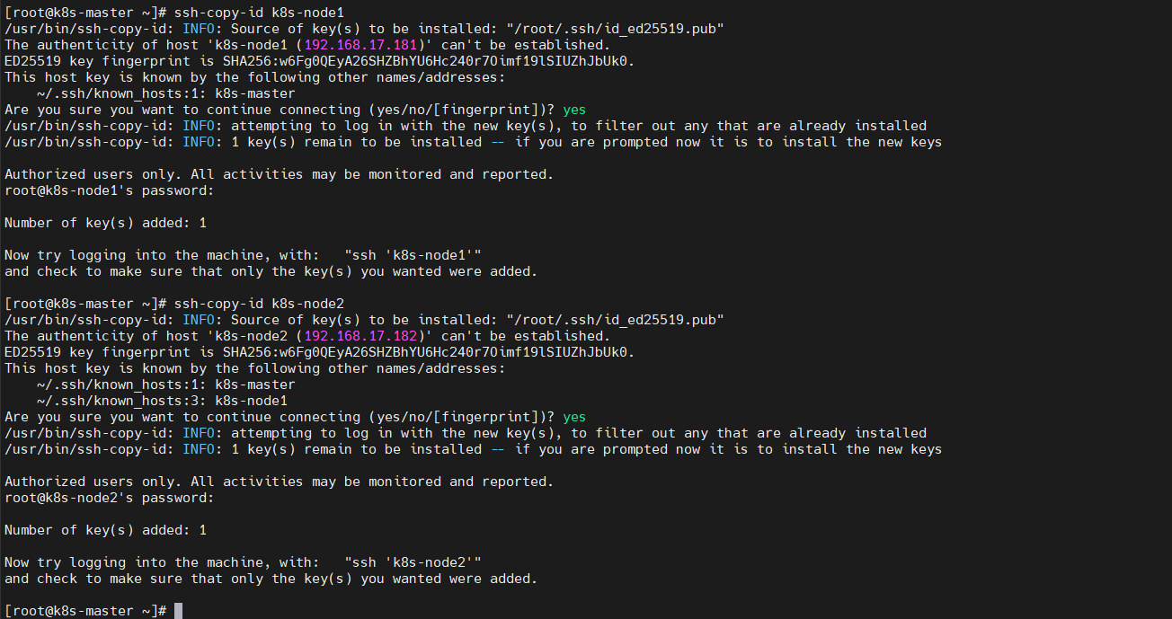 在创建ssh免密访问的过程中,输入用户密码即可。
