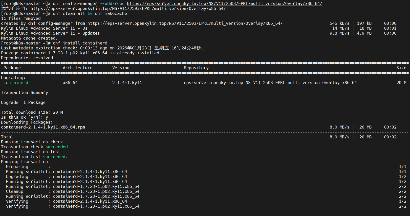 - containerd版本:containerd-2.1.4-1.ky11.x86_64