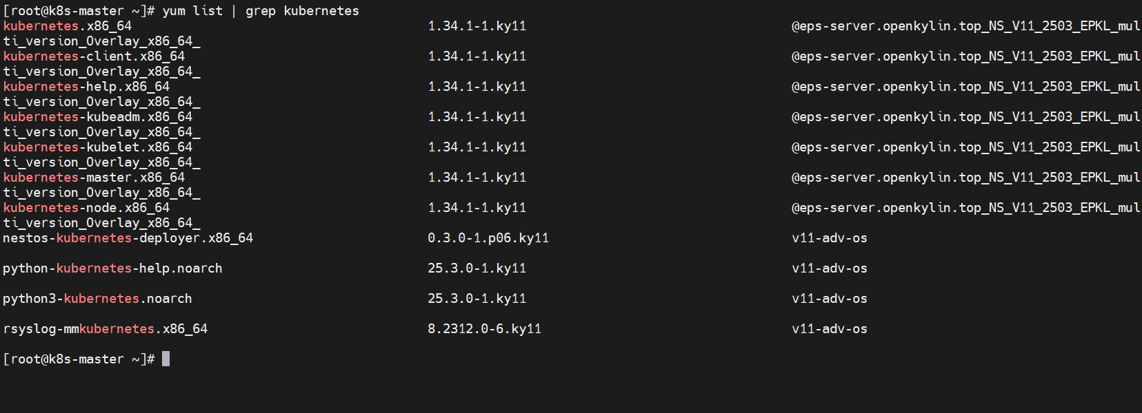 - Kubernetes版本:kubernetes.x86_64-1.34.1-1.ky11