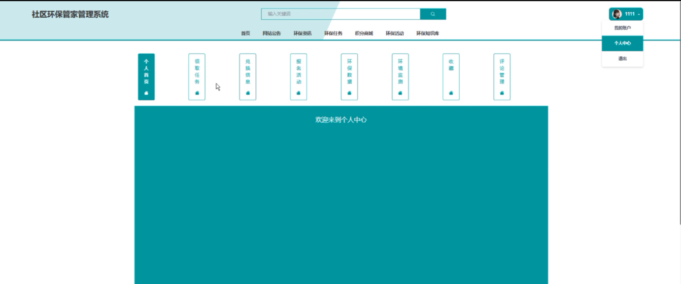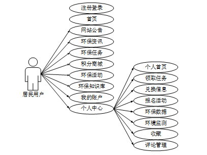 (10)个人中心:个人中心包含多个功能模块,如个人首页、领取任务、兑换信息、报名活动、环保数据、环境监测、收藏和评论管理。