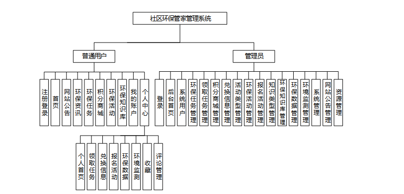 Community environmental butler management system is developed based on SpringBoot framework, aiming to provide convenient and efficient environmental protection service and management platform for resident users and administrators. The system is divided into two parts: the resident side and the management side. The resident side takes user experience as the core, providing functional modules such as registration and login, homepage information browsing, environmental protection task collection, point exchange, activity registration, etc., and supporting environmental protection data recording and environmental monitoring information submission to help residents fully participate in environmental protection practices. At the same time, residents can manage their personal information, favorites, comments and history through the Personal Center to improve the ease of use. The management side pays attention to efficient management, administrators can add, delete, modify and check user information, environmental protection tasks, points mall, activity arrangements, knowledge base and other content, and ensure the accuracy and standardization of information through the audit mechanism. In addition, the system also provides rotation chart management, website announcement and resource management functions, which is convenient for administrators to update dynamic content in real time and ensure the timeliness of information transmission.