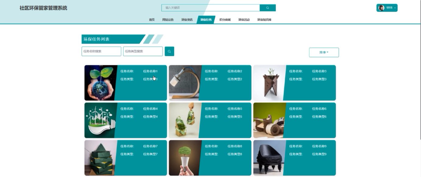 登录系统 进入环保任务页面 使用搜索栏输入关键词搜索环保任务 |