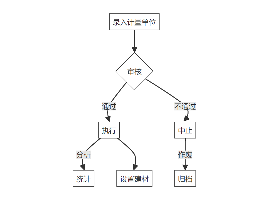 计量单位管理模块主要字段属性包括:计量单位编码、单位名称、缩写和状态。数据录入时,员工需填写相关字段并提交审核;查询功能支持根据编号或名称检索特定计量单位信息;变更操作允许修改已存在记录的某些字段值如名称或缩写,并更新数据库中的对应条目;部门领导负责对所有更改进行审核确保准确性与合理性后方能生效。统计分析方面,可通过聚合函数计算不同状态下的计量单位数量等指标以辅助决策制定。