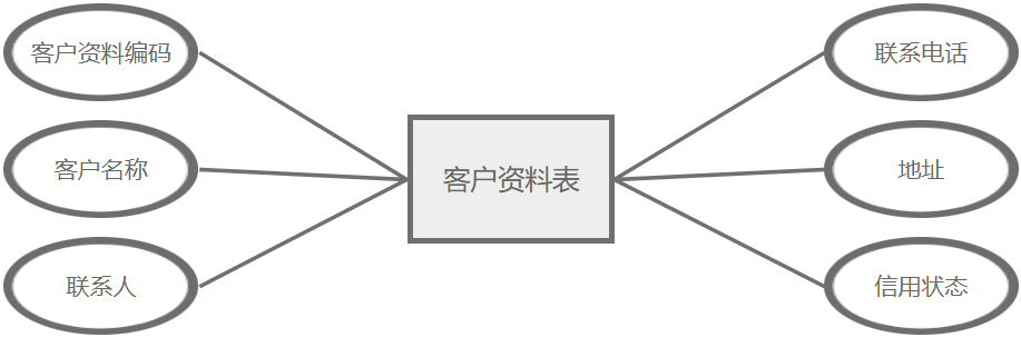 客户资料管理主要属性包括:客户资料编码、客户名称、联系人、联系电话、地址、信用状态。
