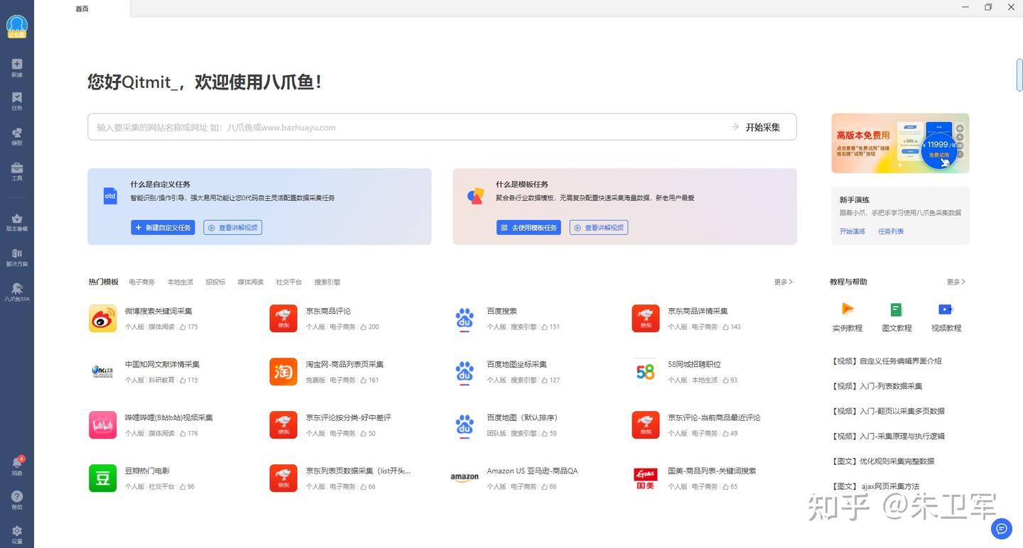 八爪鱼算是非常出名的数据采集软件了,很早就流传开来。它是一款无需任何代码,图形化操作非常方便的桌面端爬虫应用,你只需配置好URL,并简单的拖拽就可以实现批量数据采集。