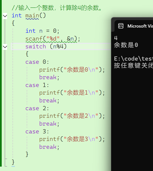 2.case语句在一个switch语句中可以存在多条,但需要注意的是其后面只能跟整型常量表达式,它的值由switch后面的表达式的值来决定,上面switch语句后面不论是表达式还是一个变量都会返回一个整型值,可以通过该整型可能会返回的值来确定有几条case语句以及case语句后面的值。 格式需要注意:case与后面的内容之间有一个空格。