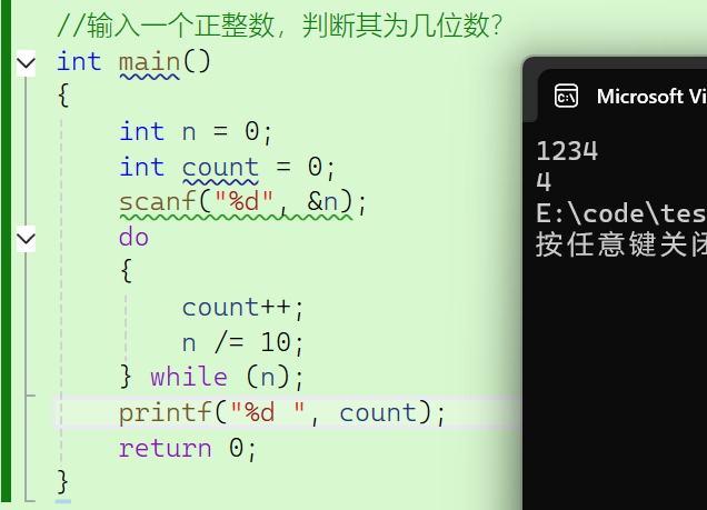 eg:输入一个正整数,判断其为几位数?(数字至少都会有一位,故特别适用do……while循环)