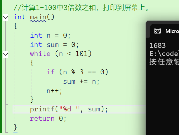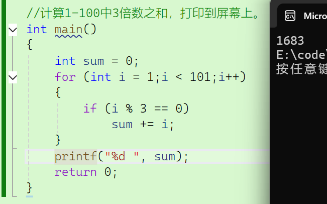 eg:计算1-100中3倍数之和,打印到屏幕上。