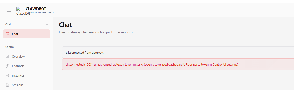 disconnected (1008): unauthorized: gateway token mismatch (open a tokenized dashboard URL or paste token in Control UI settings)