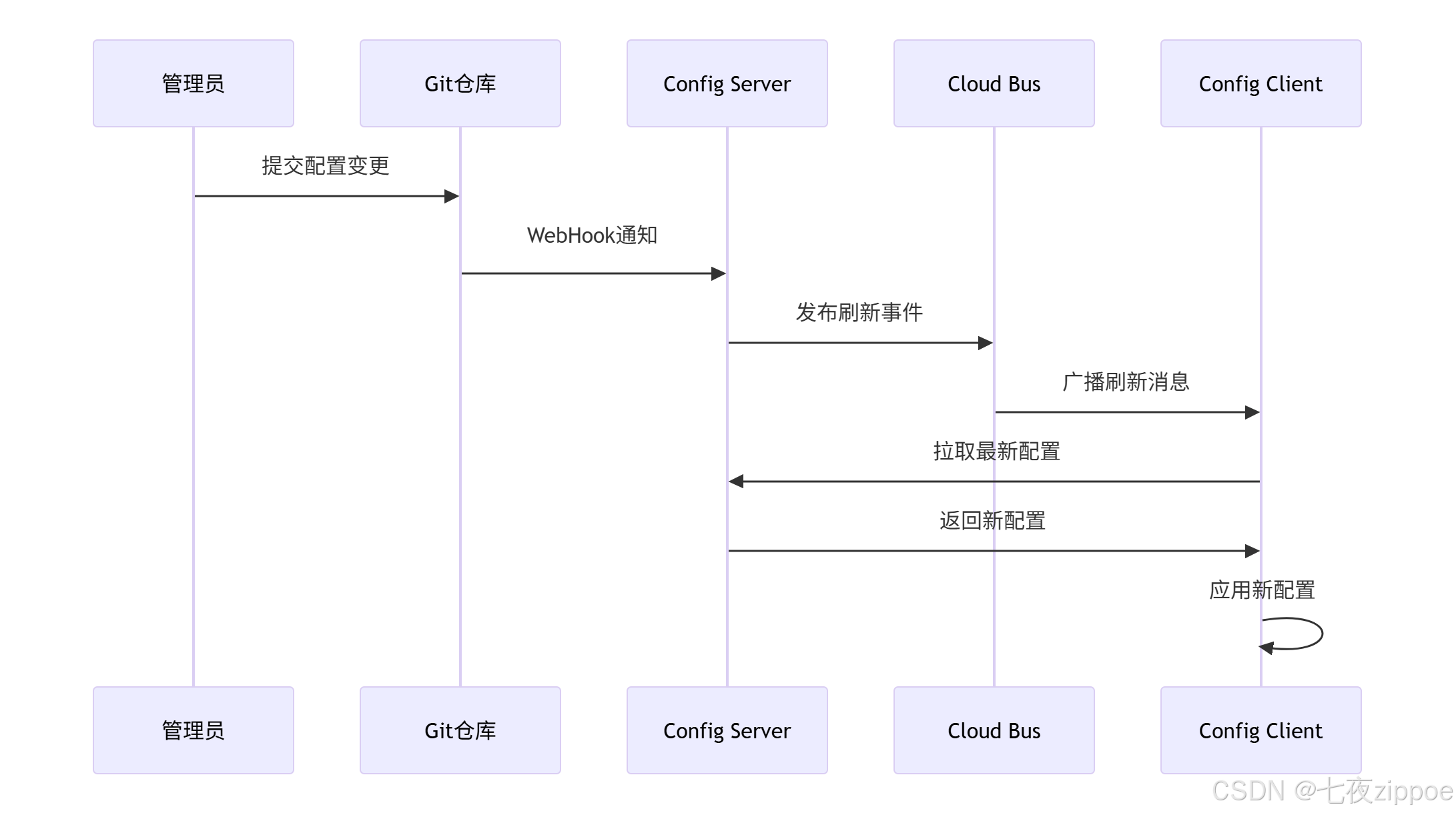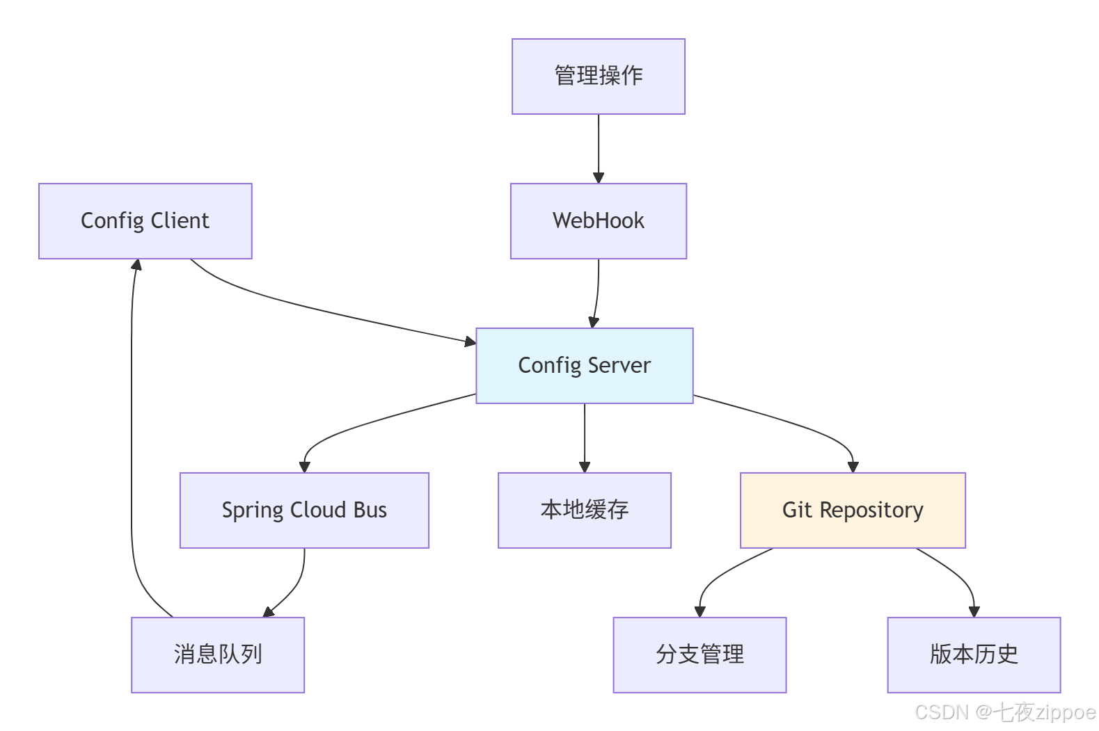 Spring Cloud Config采用经典的客户端-服务器架构,与Git深度集成: