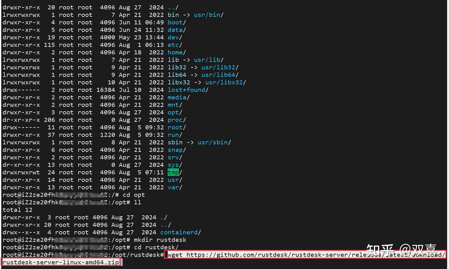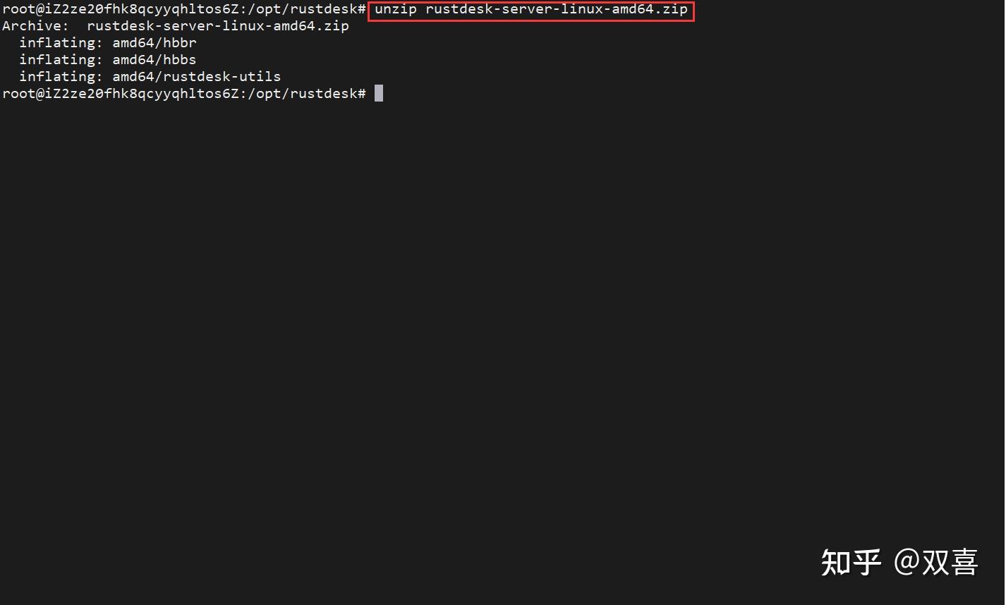 第二步:解压缩zip包 解压命令:unzip rustdesk-server-linux-amd64.zip