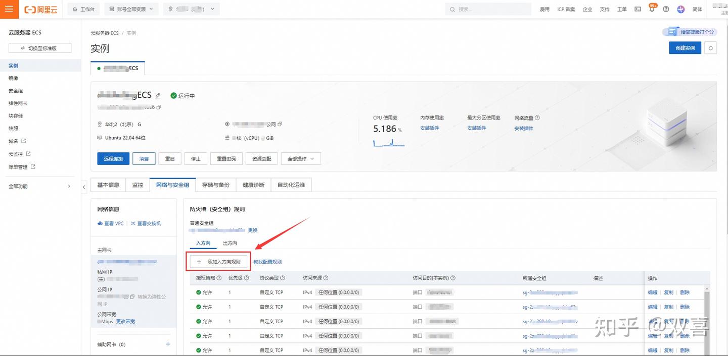 1、防火墙(安全组)规则设置界面,点击【添加入方向规则】