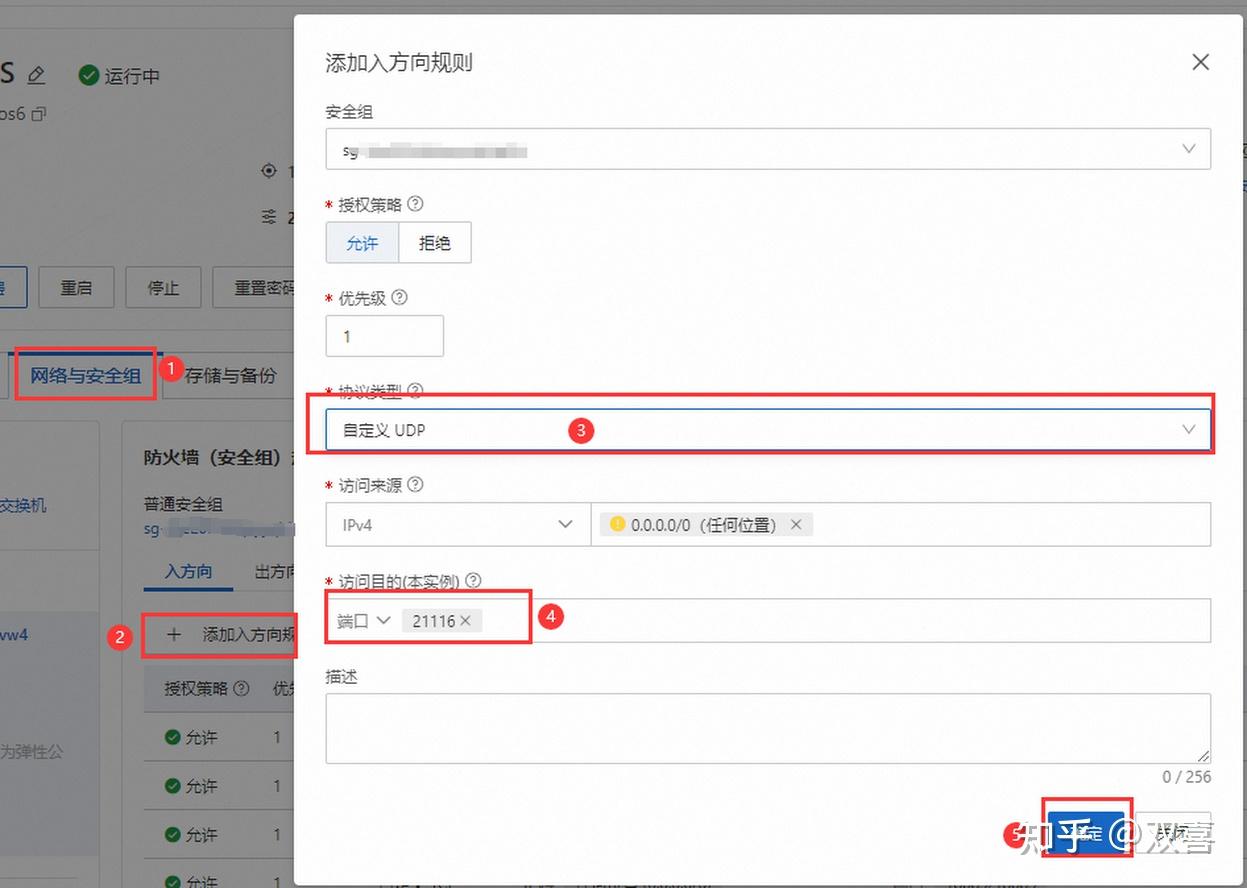 3、添加端口设置:UDP: 21116,请按照顺序依次点击。