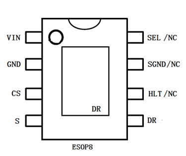 - 高集成低损耗:内置低压差功率 MOS,无需额外外接功率器件,设计流程更简洁;正常工作时压降可控制在 1V 以内,功耗表现优异;采用 ESOP8 封装,底部焊盘导热效果好,⑥⑦⑧脚为预留空脚,建议将⑧脚连接到⑦脚,以兼容同系列产品引脚。