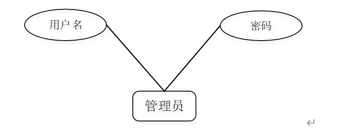 分析开发区流动人口服务系统的数据结构后,在E-R图中分析管理员登录时的模式,需要输入用户名与密码,管理员信息E-R如图4-4所示。