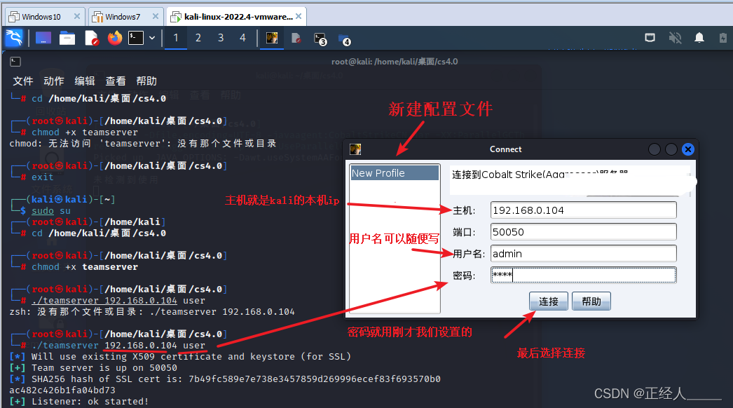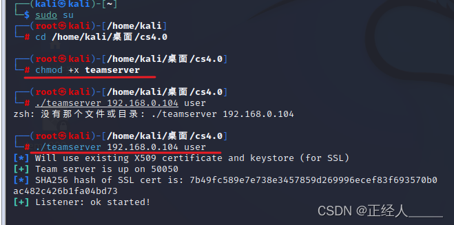 在 cs4.0目录下新建终端,然后运行服务端teamserver