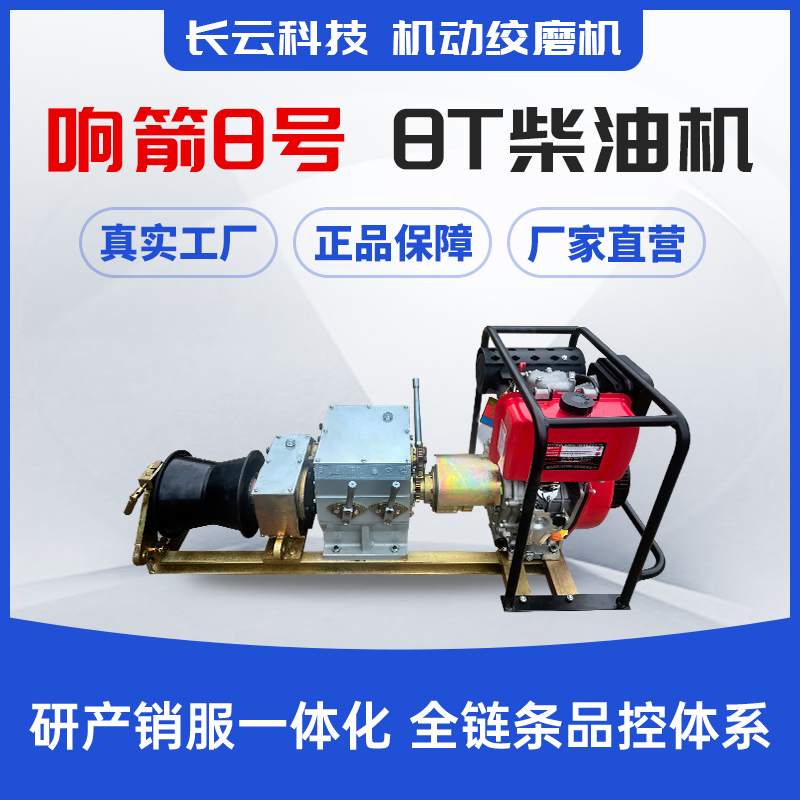 长云科技响箭8号柴油款机动绞磨机专为严苛的无电力供应环境设计,其核心采用柴油机动力,扭矩强劲且运行稳定,为山区、野外等复杂地形的重型牵引作业提供了可靠的安全保障。