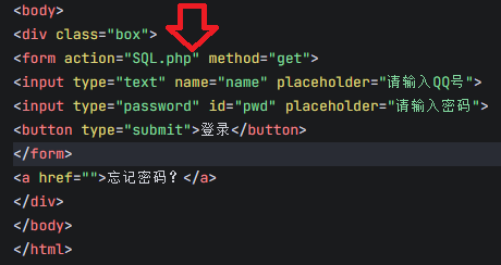 先制作一个前端登陆器,使用get函数 获取信息,并且跳转另一个页面:SQL.php