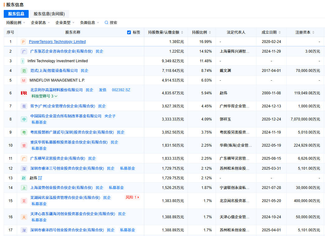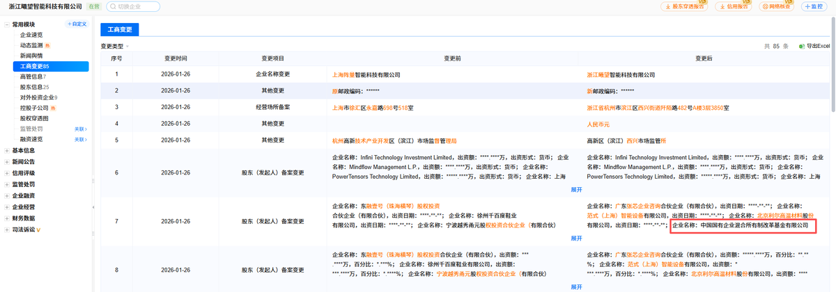 投资通过曦望核心关联公司上海阵量智能落地,工商登记信息明确显示,上海阵量智能注册资本从原本5亿元,直接跃升至8.15亿元,国企混改基金稳稳出现在新增股东序列里。