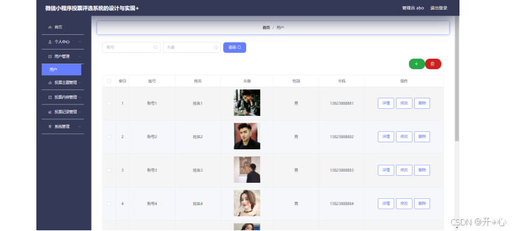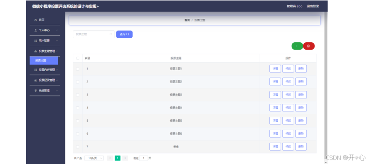 管理员可以对投票主题信息进行添加,修改,删除,查询操作。