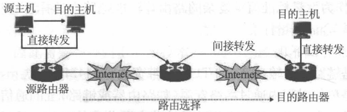分组转发是指路由器转发IP分组的物理传输过程。一台主机通常是与一台路由器相连接,这台路由器则为默认路由器,也叫第一跳或者缺省(sheng)路由器。
