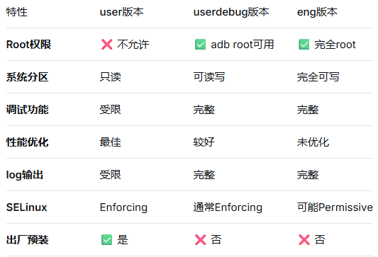查看当前Android设备的系统是user版本、userdebug版本还是eng版本