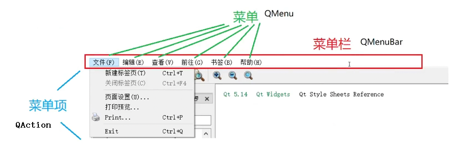 menubar->addMenu(menu1);//把菜单对象添加到菜单栏