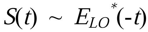 探测电压的外差部分为:\\begin{equation} V'(t) = aR(t) \\otimes E_L^{*}(t) E_S(t), \\tag{9} \\end{equation}
