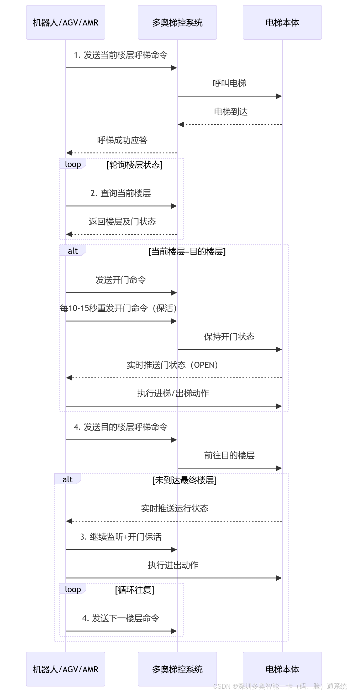 | 10-15秒心跳保活 | 防止电梯门在机器人进出过程中关闭,造成夹伤或任务中断 |