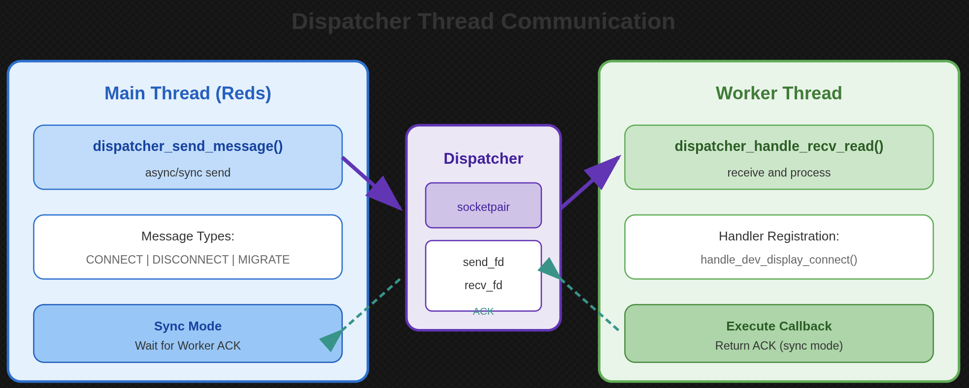 - 主线程(Reds):处理连接管理、认证、Agent通信、输入和音频通道
