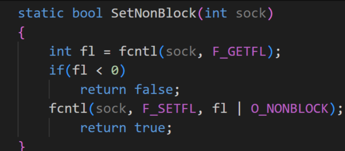 Log.hpp和以前一样,因为下面要写ET模式所以Sock.hpp加了一个把sock设置成非阻塞的函数:(要#include <fcntl.h>)