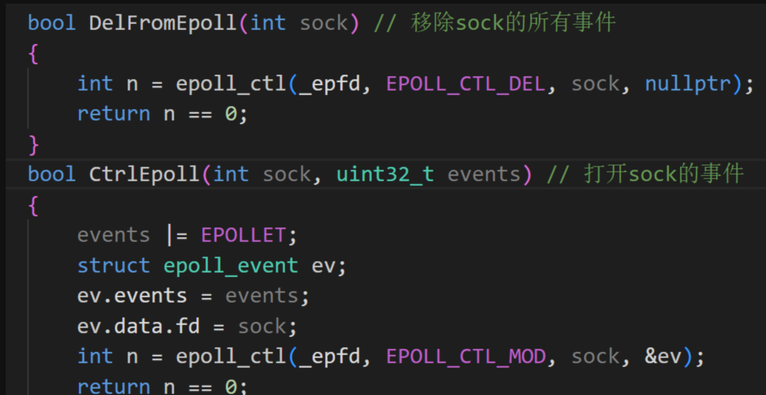 bool CtrlEpoll(int sock, uint32_t events) // 打开sock的事件