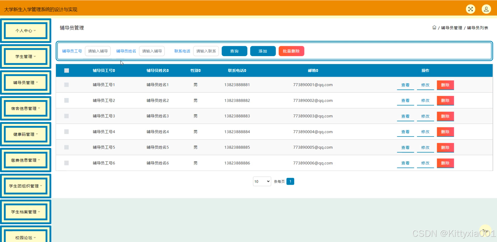 学生,辅导员,宿舍信息,健康码,缴费信息,学生团组织,学生档案