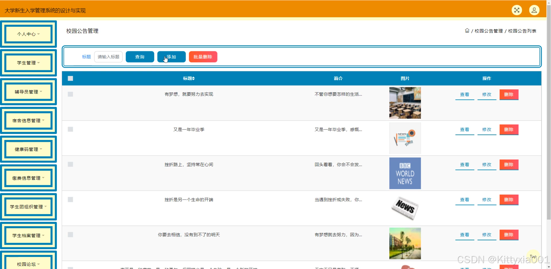 随着高等教育的普及和招生规模的扩大,大学新生入学管理成为高校日常管理中的重要环节。传统的入学管理方式存在信息更新不及时、流程繁琐、效率低下等问题,给学校和学生都带来了不便。因此,开发一套大学新生入学管理系统具有重要意义。该系统旨在通过信息化手段,实现新生入学信息的快速录入、查询、管理和分析,提高入学管理的效率和准确性,为新生提供更加便捷、高效的服务。