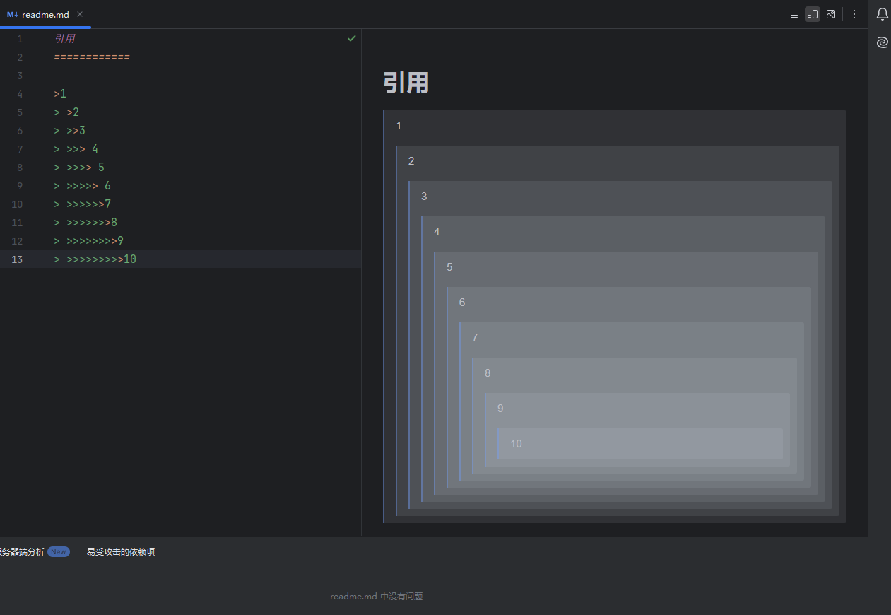 若需要使用‘引用’格式,在文档中引用一段或一句文本内容,可以在引用文本前添加 > (大于号);