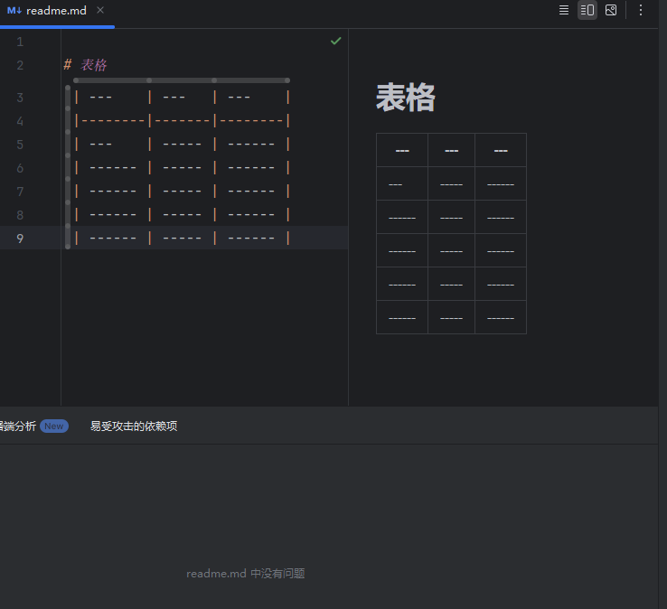 输入表格前需要有空白行,且“|”(竖线)和“-”(横线)符号两侧亦需要有空格;