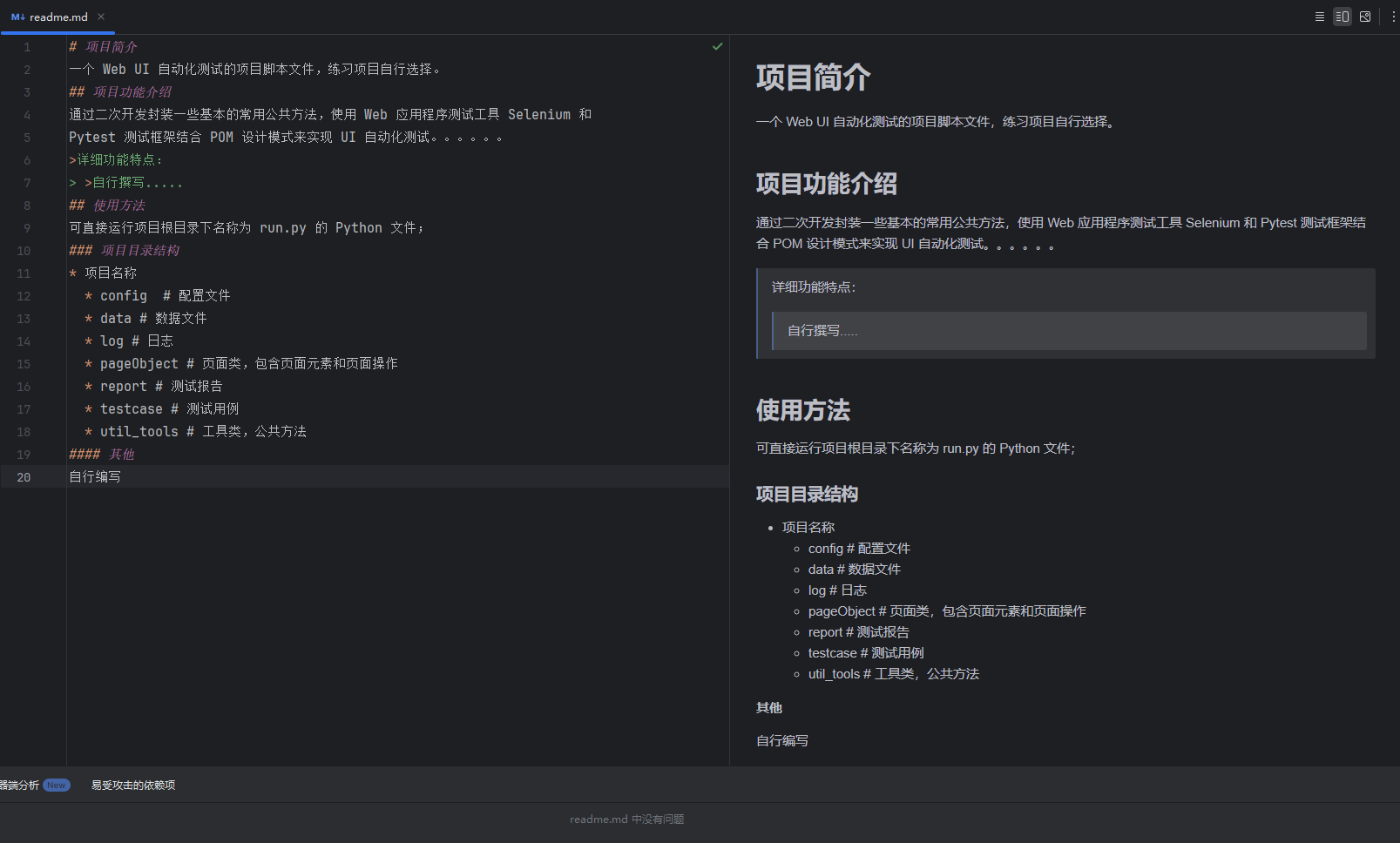 在项目根目录下新建一个名称为 readme.md(README.md) 的文件(自行选择);