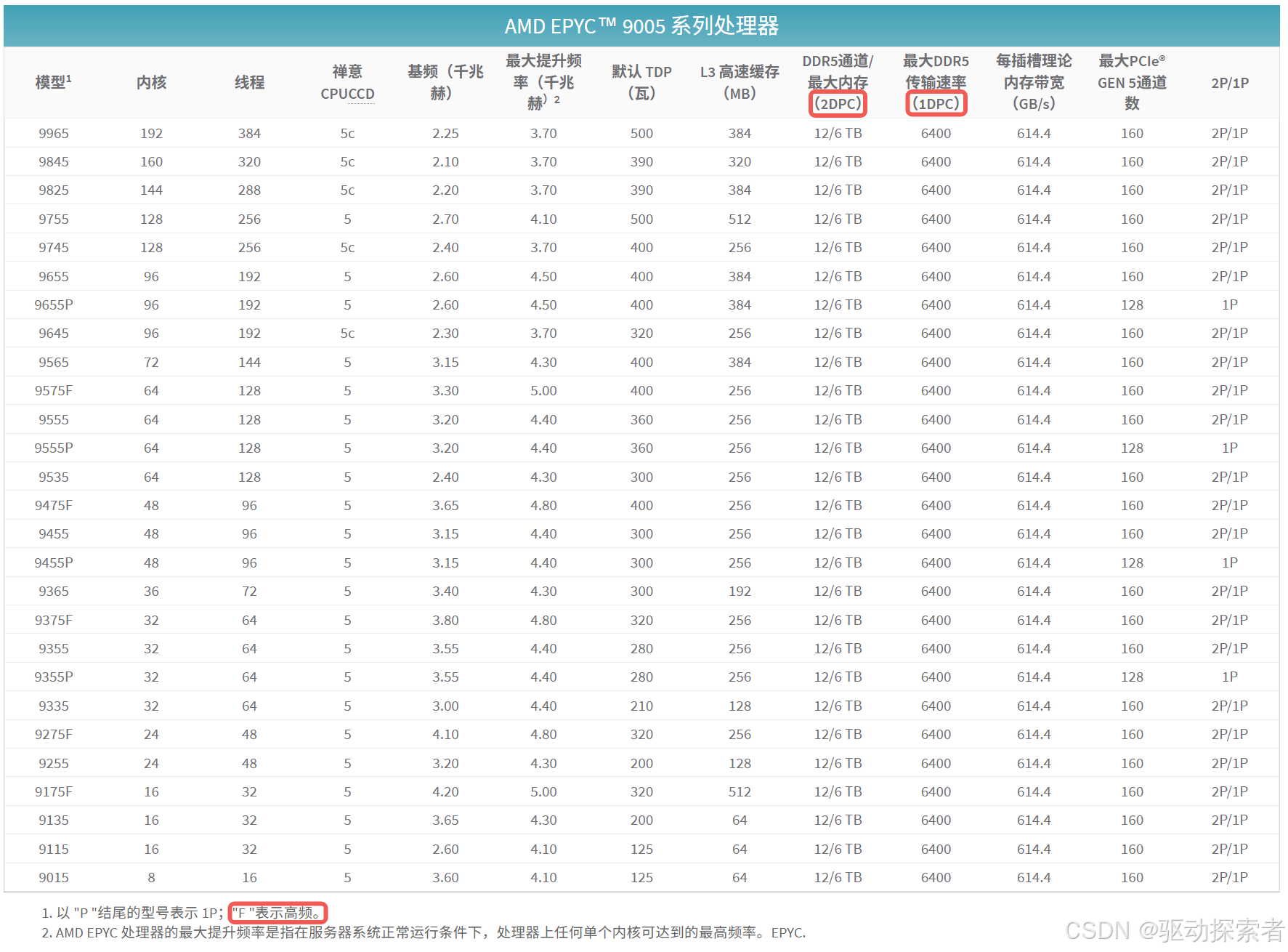 EPYC 9005 系列(第五代):面向 AI、云及高性能数据中心。