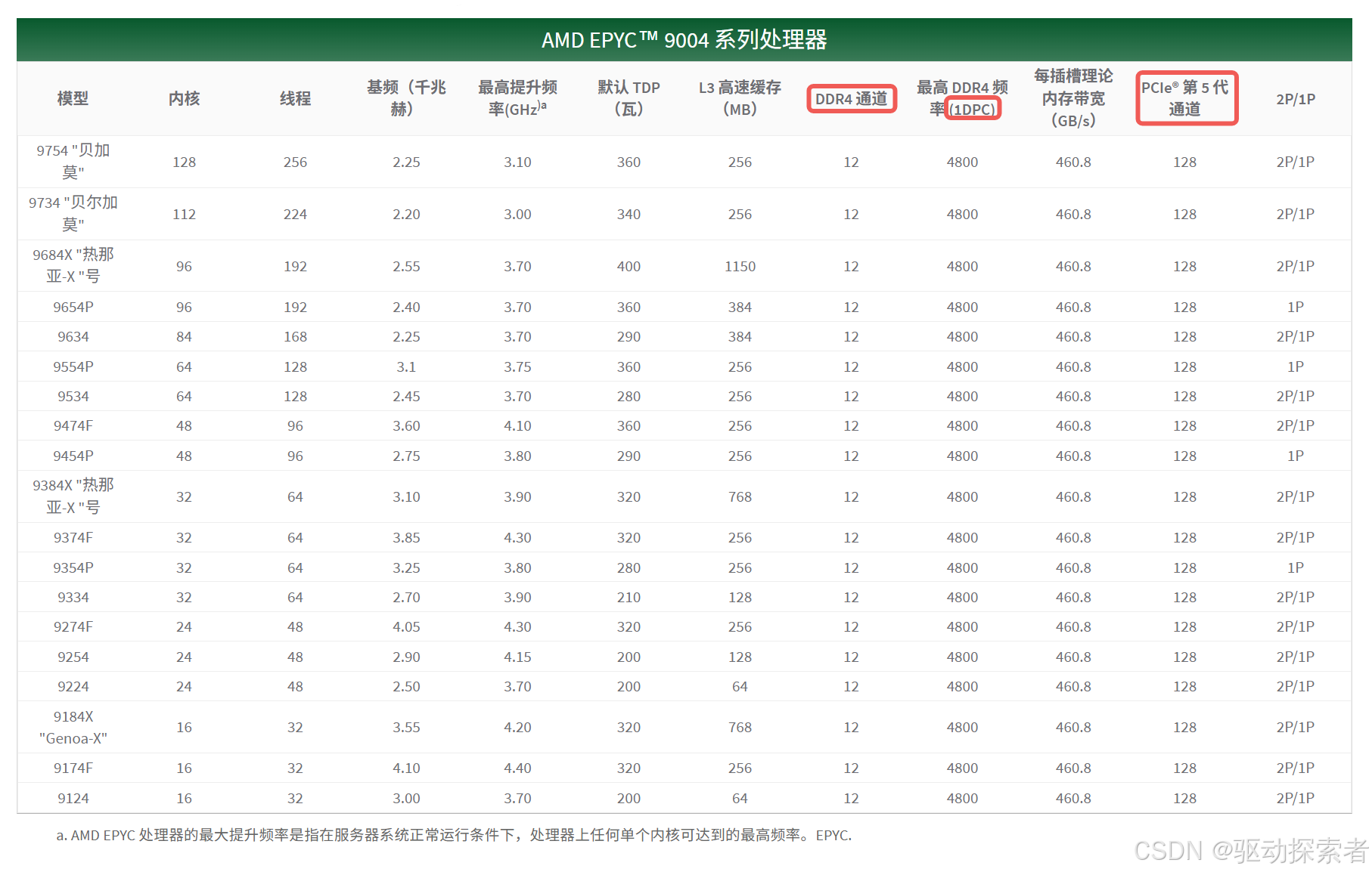 第四代 EPYC 9004 系列继承了前代产品的架构设计,并在内存带宽与 I/O 性能上持续提升: