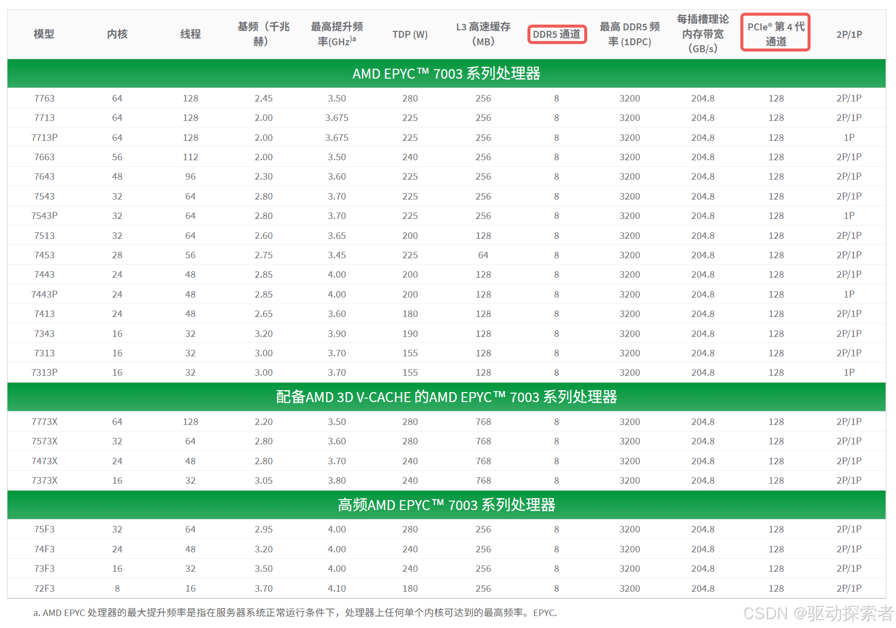 第三代 EPYC 7003 系列基于 Zen 3 架构,是过去几年内被广泛部署的高性能服务器处理器: