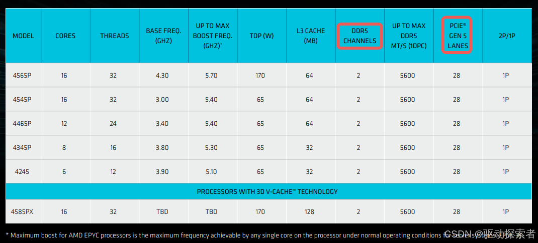 PCIe 通道:单插槽最高支持 128 条 PCIe 5.0 通道(双插槽最高 160 条)。