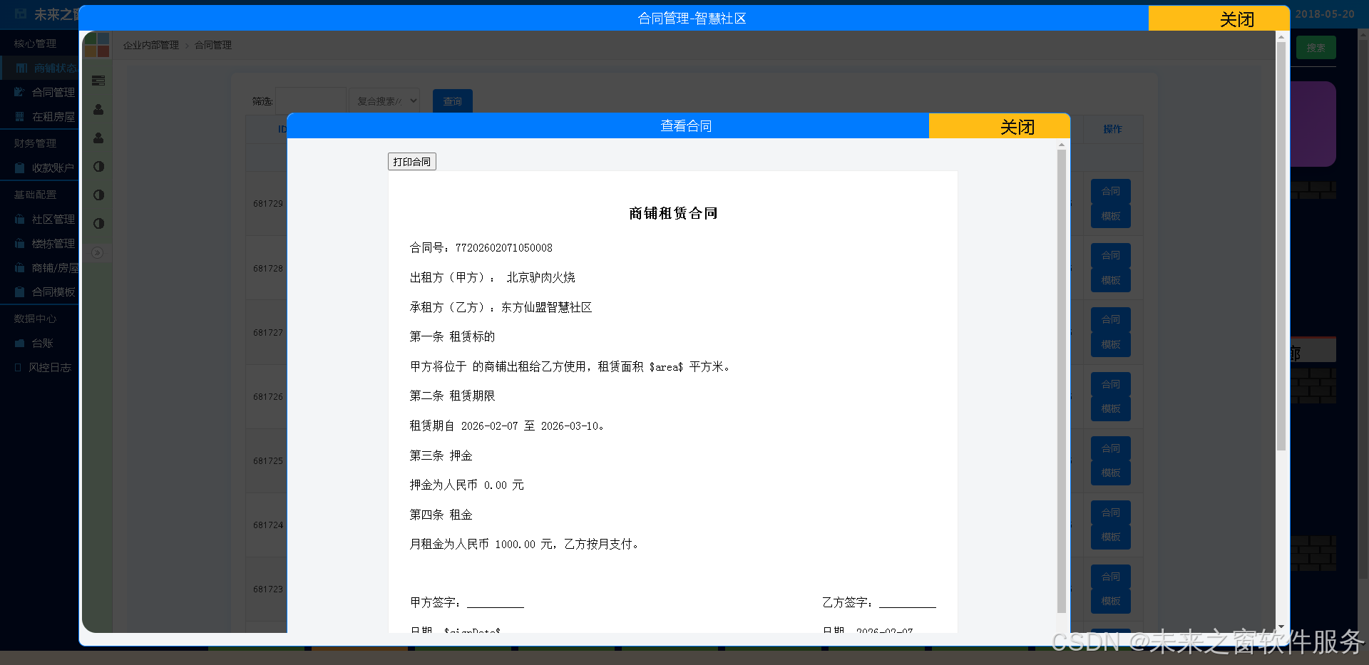 商铺租赁管理工作台