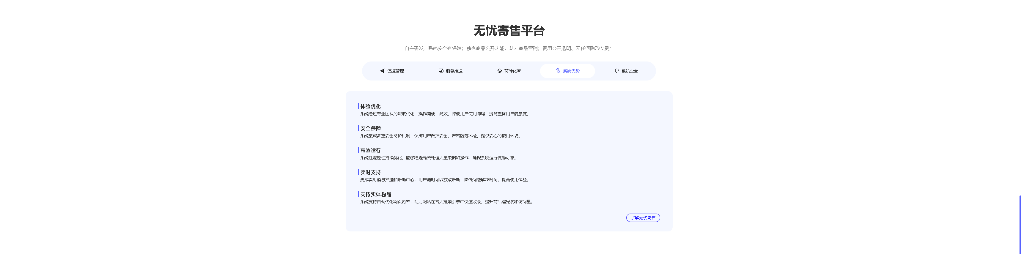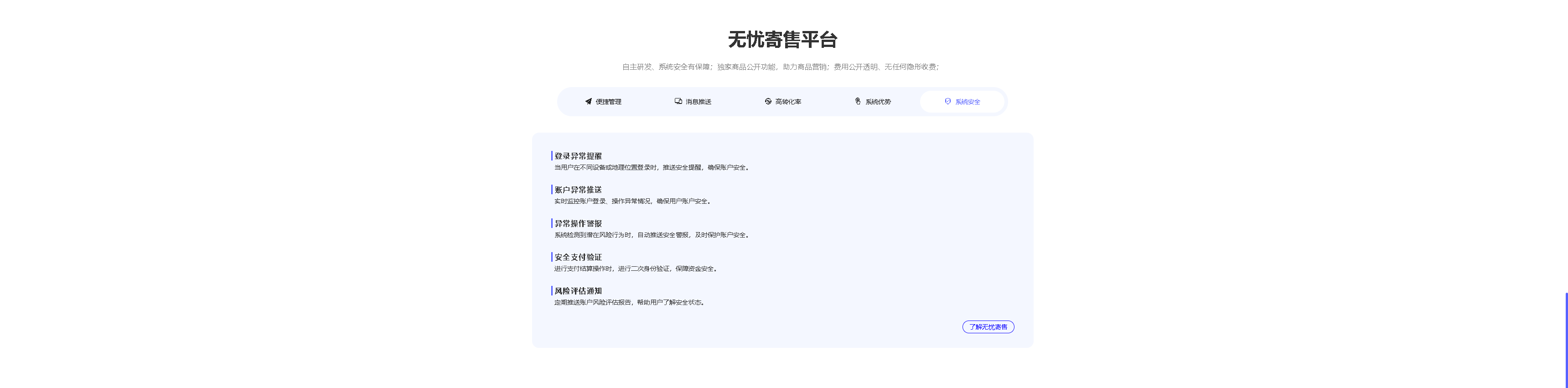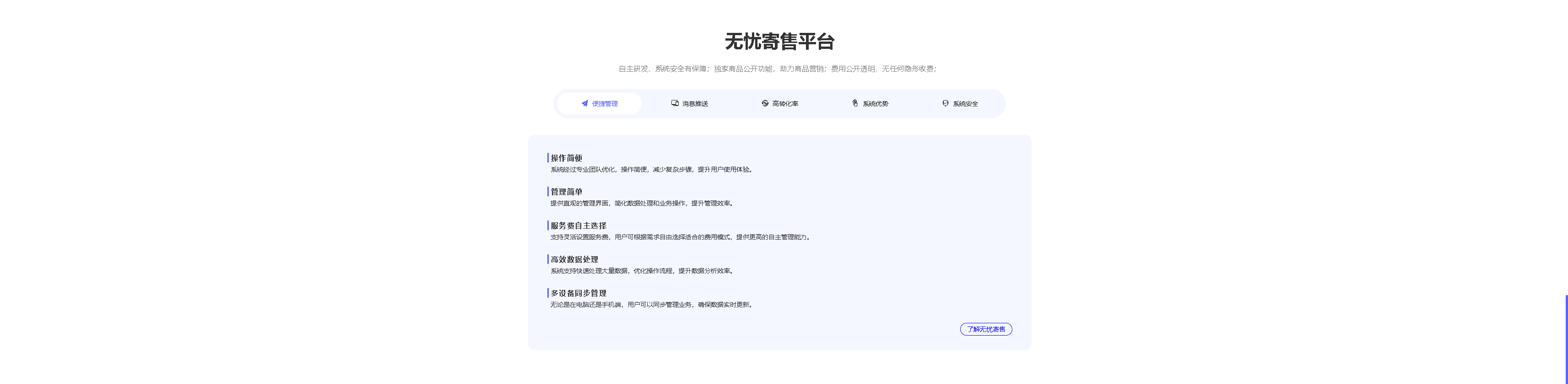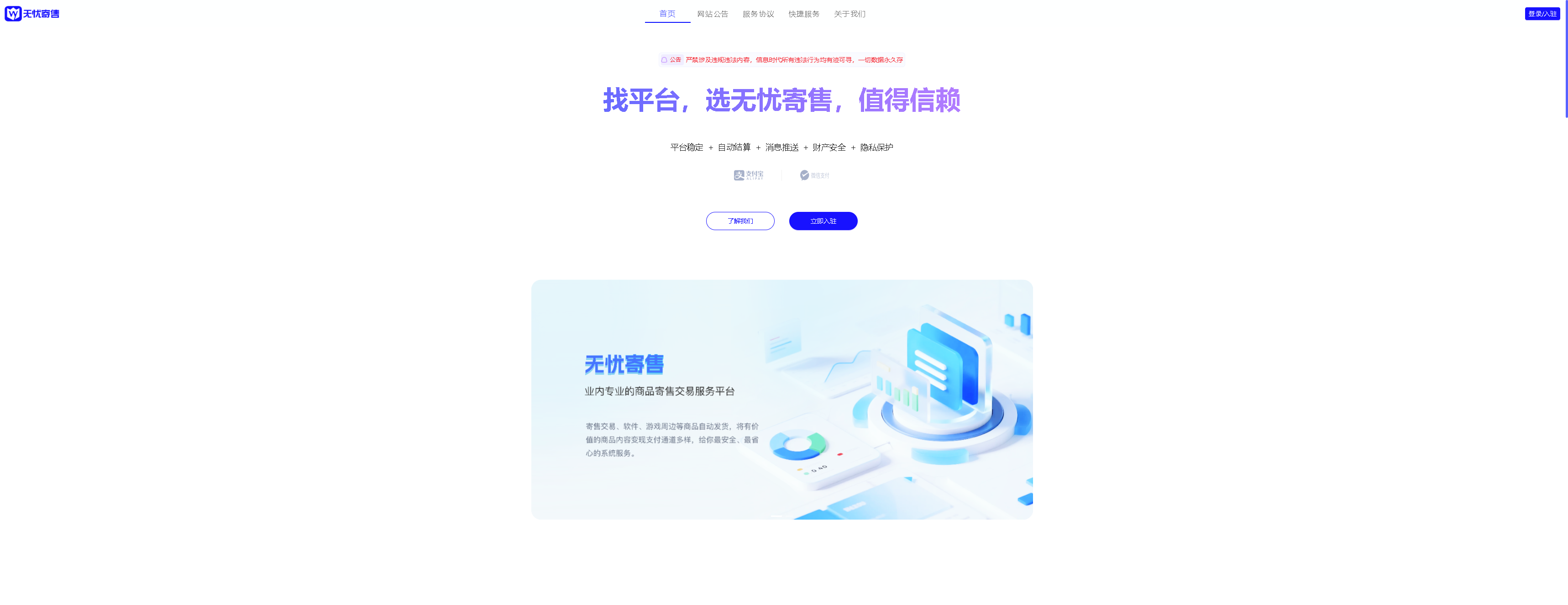 无忧寄售平台,致力于打造国内更专业、更好用、更安全的寄售交易平台。我们提供全面的自助交易服务,涵盖游戏装备、游戏道具、软件、CDK等多种玩家物品的交易,旨在为广大用户提供一个安全、便捷、性价比高的交易环境。无论是个人玩家还是优质商家,都能在平台上轻松开店,进行自由买卖。我们的平台以用户为中心,注重交易安全,确保每一笔交易都受到严格保障,保护用户隐私和利益免受风险。同时,平台管理简单高效,让商家可以轻松掌控店铺运营,快速完成交易。无忧寄售平台通过优化的交易流程与精准的服务,为用户提供更好的流量体验,成为您可信赖的玩家交易平台。欢迎广大优质商家入驻,共同构建更加完善、安全、便利的交易生态。无论是装备交易,游戏道具,还是手游内玩家物品的交换,无忧寄售平台都将是您最佳的选择。