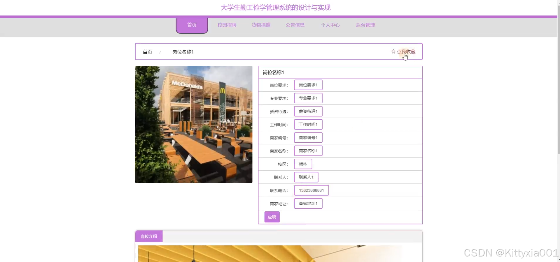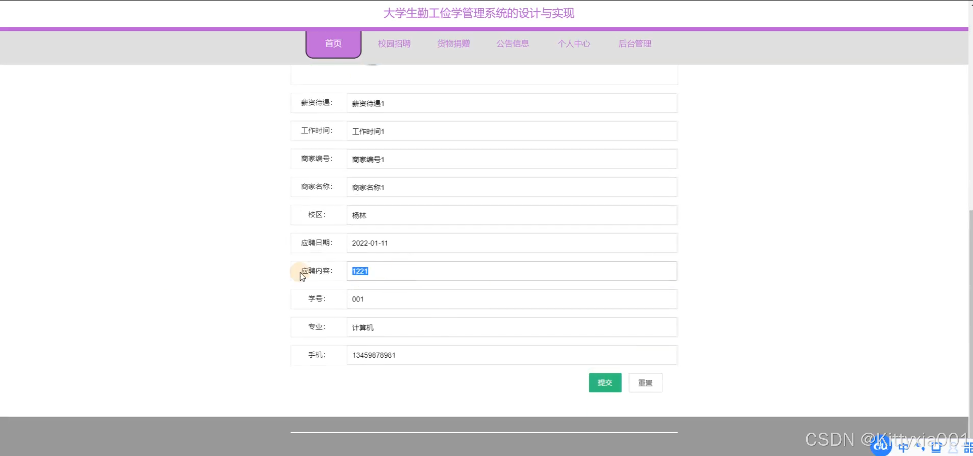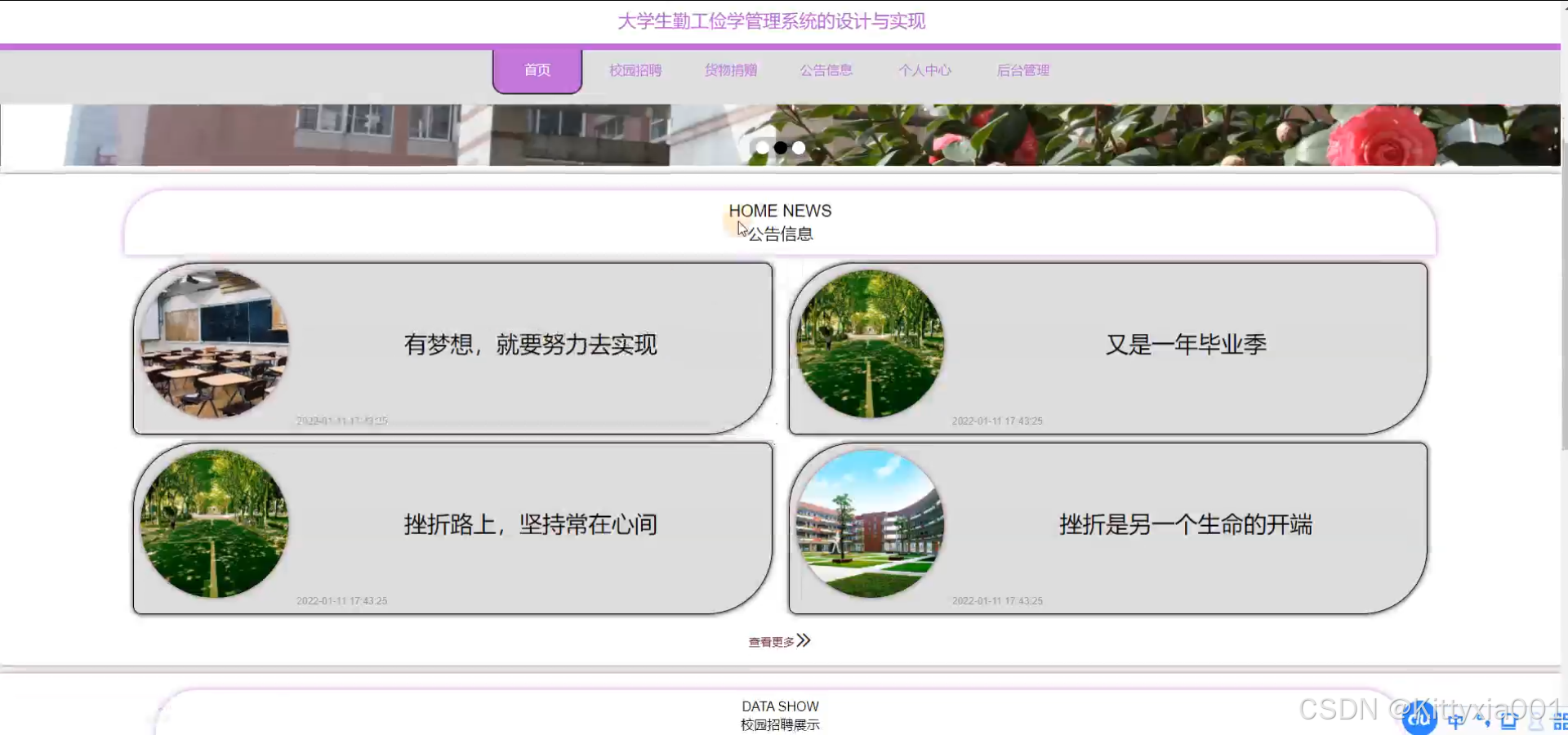 随着高等教育的普及,越来越多的学生选择通过勤工俭学来减轻家庭经济负担并积累实践经验。昆明城市学院作为一所位于昆明市的高校,学生勤工俭学的需求日益增长。然而,现有的勤工俭学信息渠道存在信息零散、更新不及时等问题,难以满足学生的实际需求。因此,设计和实现一个专门的昆明城市学院勤工俭学网显得尤为重要。