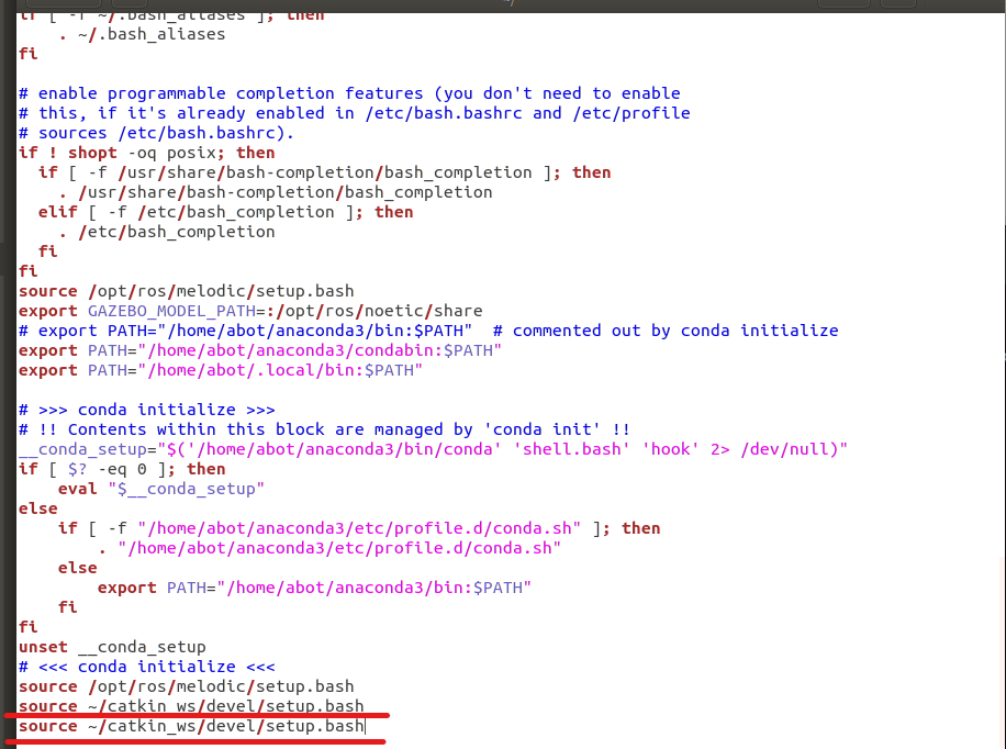 source ~/catkin_ws/devel/setup.bash # 这行是旧工作空间的环境变量