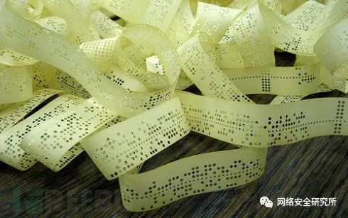 1951年4月开始在英国牛津郡哈维尔原子能研究基地正式投入使用的英国数字计算机“哈维尔·德卡特伦”,是当时世界上仅有的十几台电脑之一。图中两人手持的“纸带”即是早期的程序,纸带通过是否穿孔记录1或0,而这些正好对应电子器件的开关状态,这便是机器码,是一种早期计算机程序的存储形式。